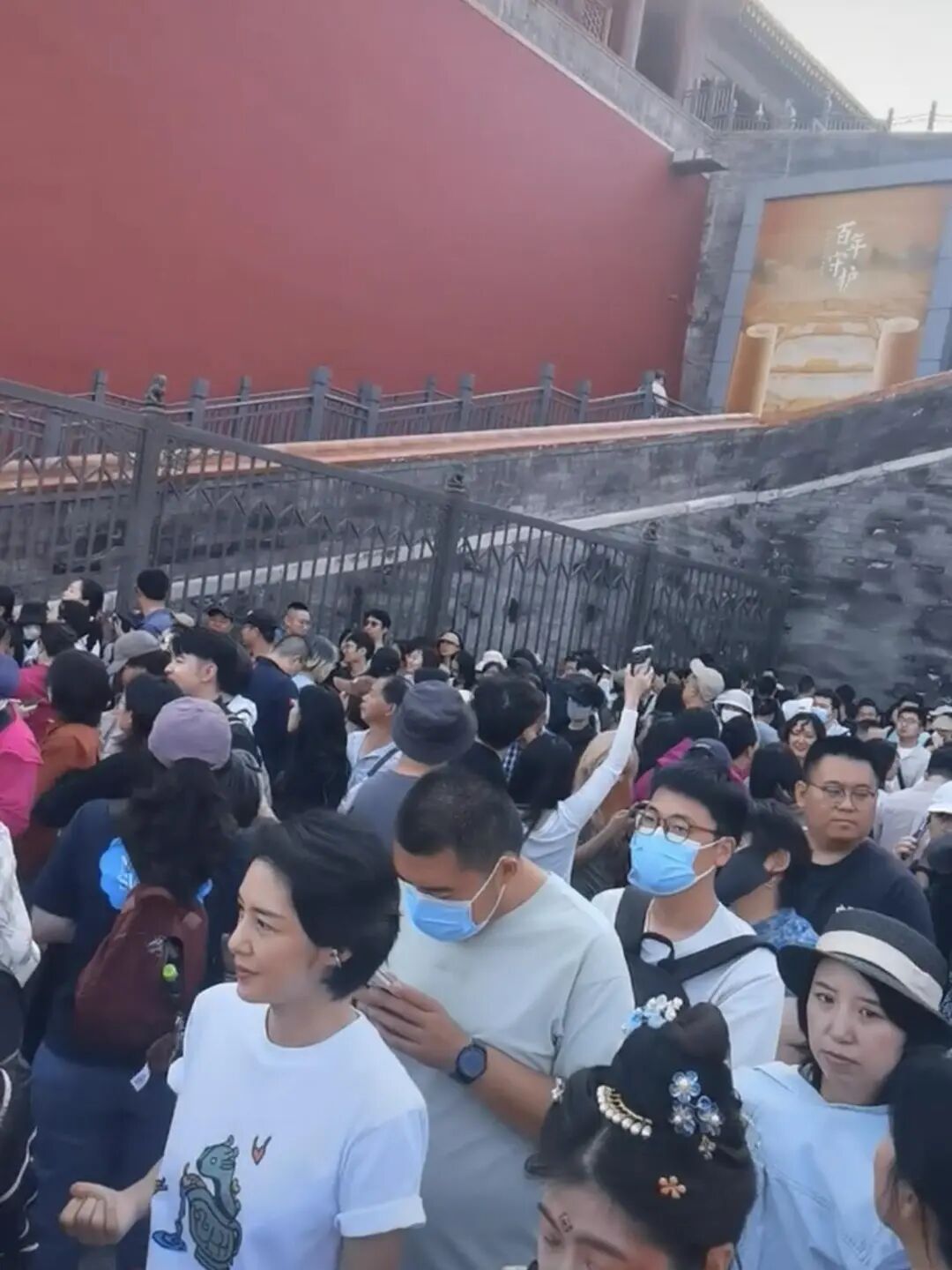 记者注意到,一部分没有预约到故宫博物院门票的游客,也选择在午门外拍照留念。一位身着“格格装”的游客告诉记者,她和朋友来自浙江杭州,提前两周就在蹲故宫门票,但一直没能抢到票,最后选择在景山公园俯瞰故宫全景,弥补遗憾。